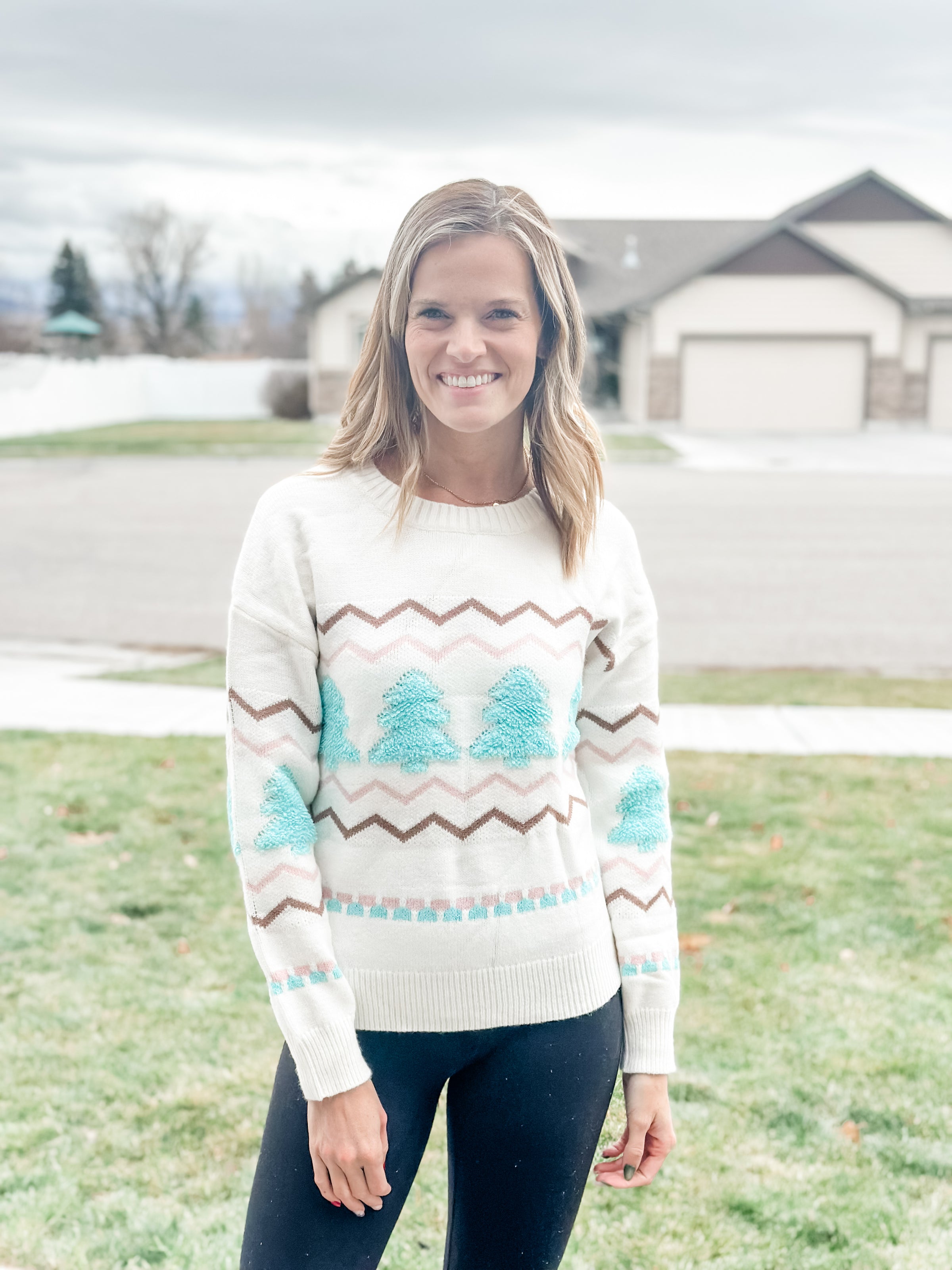 Wrap yourself in holiday cheer with Ellen, a delightfully festive sweater that combines playful style with cozy comfort. The charming Christmas tree design paired with a fun striped pattern creates an instantly joyful look that's perfect for the season. Drop shoulders deliver that effortlessly relaxed vibe, while ribbed trim detailing keeps everything polished and put-together. Whether you're sipping cocoa by the fire or spreading holiday spirit around town, this sweater is your new seasonal favorite.